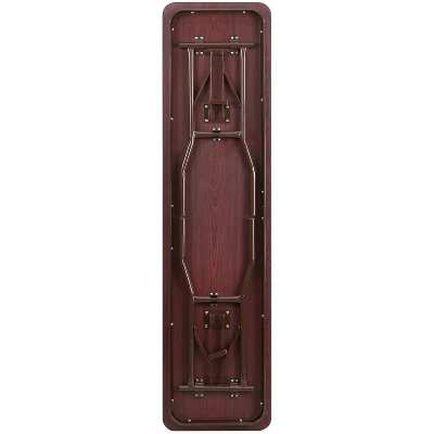 This rectangular wood folding table is beneficial in a multitude of settings that include the classroom, banquet halls and in training rooms. The space saving design can allow multiple tables in a small to large setting making it the perfect training style table for the classroom or any training facility. The table legs fold under the table to make storage more convenient and for better portability. This table is commercial grade to withstand everyday use in the hospitality industry. Additional Features: Brown T-Mold Edge Band, Brown Powder Coated Pedestal Legs, 18 Gauge Steel Legs, Protective Floor Caps