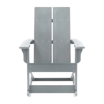 A new twist on a classic design brings you this modern adirondack rocking chair ideal for a day on your front porch, deck, or sunroom. This rocking lounge chair has an extra wide supportive back and slanted seat and arms that relieve tension from the neck and shoulders for ultimate comfort. The polystyrene resin composition mimics the look of wood while vertical dual slat back lends a casual sophistication to any decor indoors or out. Constructed of weather-resistant polystyrene, and UV treated, this backyard chair was designed to hold up in many environments and is strong enough to accommodate users up to 350 pounds. With no sanding, painting, or sealing, these traditional chairs, maintenance is simple and they won’t rot, peel, or splinter. Cleanup is easily accomplished with water and a neutral detergent to maintain appearances and assembly takes less than 30 minutes with the included materials. This all-weather adirondack chair is ideal around the firepit and will add timeless elegance to any indoor or outdoor living space.