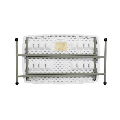 If you need extra surface space in your office cubicle, classroom, training room, dorm room, or in the home, this adjustable height personal folding table may be just what you’re looking for. The granite white top gives a clean and tidy appearance to any space and adjusts from 20.8″H to 27″H to accommodate a variety of tasks. Pick one of the three height adjustment grooves and raise the tab to lock the frame in place. Lightweight for easy transport and suitable for indoor/outdoor use, this commercial grade table would be an excellent addition to any space. Use this handy piece as a laptop table while sitting on the floor to craft your term paper, a TV tray to watch your favorite show during dinner, or as a companion desk in your workspace without worry. Welded joints, metal screw construction and a gray powder coated steel frame provide a stable base to support up to 50 lbs. static weight capacity. The high density polyethylene top is ultra-strong and durable and does not break down from sun exposure so it’s ideal for camping or tailgating. This multi-use side table needs no assembly and folds flat for convenient storage and transportation. A water based cleaner quickly cleans up spills and removes dust. Fixed plastic floor glides will prevent damage to your hard flooring surfaces. Additional Features: Folds Flat for Easy Storage or Transport at 2.5″, No Assembly Required; Legs Adjust in Three Increments, Multi-Use plastic folding table with height adjustable frame for the office, living room, camping, and tailgating