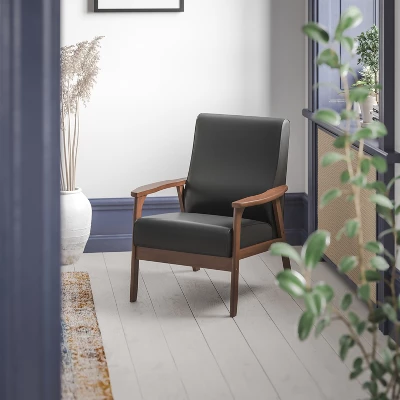 Flash Furniture Langston Commercial Grade Upholstered Mid Century Modern Arm Chair With Wooden Frame And Arms