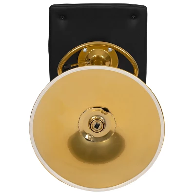 Provide the perfect pop of color and on-trend appeal in your home with this set of 2 black adjustable barstools. This modern style armless stool has a gracefully contoured shape and mid-back design that offers the perfect amount of support for guests. The armless design brings you closer to your dining table, card table or basement bar. This dual-use stool gives you two chairs for the price of one. The height adjustable swivel seat adjusts from counter to bar height with the handle located below the seat. The gold pedestal base supports up to 330 lbs. weight capacity to accommodate most users while the footrest supports your feet and promotes good posture. Spills and other pesky messes clean up quickly with water and a neutral detergent. To help protect your hard flooring surfacess, the base features an embedded plastic ring. Purchase several of these adjustable stools to ensure you always have plentiful seating for guests.