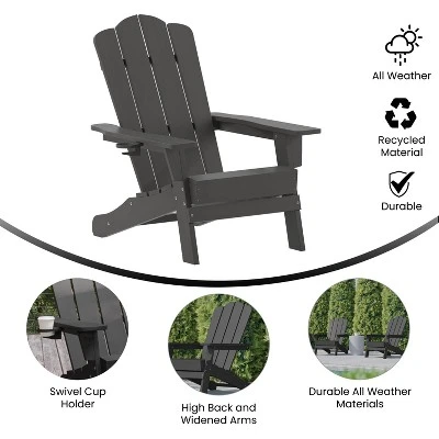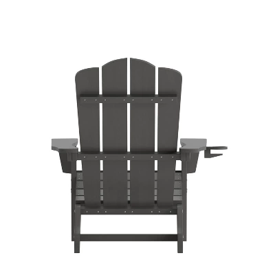 Give your commercial or residential outdoor spaces an instant upgrade and lots of cozy comfort with this all-weather Adirondack style chair. Beautifully crafted to fit in any dĂ©cor, this outdoor patio chair is ideal for your outdoor lounge areas as well as poolside and can pull double duty as indoor seating. The supportive vertical back paired with the slanted seat with a waterfall front allows your whole body to relax. Extra wide arms relieve tension from the neck and shoulders and boast a slide out cupholder on the right side to free up your hands. Comprised of HDPE, this patio chair mimics the look of wood, but is stronger and doesn’t require any back-breaking labor for upkeep. The faux wood composition will not rot, chip, or peel and no painting or sanding will ever be required. UV fade resistance allows you to leave this Adirondack chair out year round on your porch or patio and great looks mean you can bring it into your lobby or sunroom for comfort in any season. Assembly is quick and easy with the included tools and step-by-step instructions and a damp cloth is all that is needed to maintain the looks of this fabulous Adirondack chair with cupholder. Available in multiple colors, feel free to mix and match or maintain a uniform color to suit your needs.