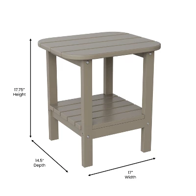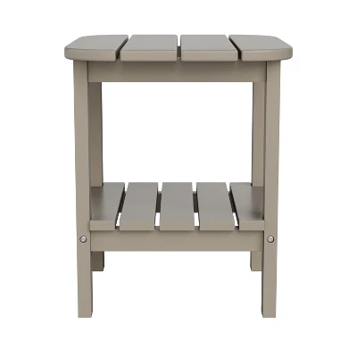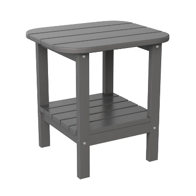 Add elegant style and much needed horizontal real estate to your hotel or restaurants outdoor lounge areas or your own back yard with this 2 tier Adirondack patio table. Whether you’re furnishing your home or business, this Adirondack style side table will fit right in. Beautifully styled to blend in almost any aesthetic, this outdoor table is the perfect piece to complement your existing furniture or you can pair with new Adirondack pieces for a complete look. Comprised of all-weather HDPE, this outdoor table mimics the look of wood without the back-breaking labor. The faux wood composition will not rot, chip, or peel and no painting or sanding will ever be required. UV fade resistance allows you to leave this accent table out year round on hotel balconies, front porches or patios and great looks mean you can bring it into your lobby or sunroom to complete your setup. Your new table assembles quickly and easily and wipes clean with a damp cloth making it ideal for busy establishments and households. Available in multiple colors, feel free to mix and match to meet your needs.