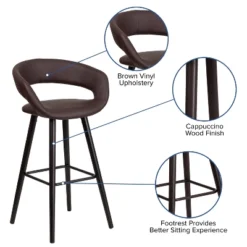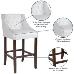 Flash Furniture Carmel Series 30″ High Transitional Tufted Walnut Barstool With Accent Nail Trim