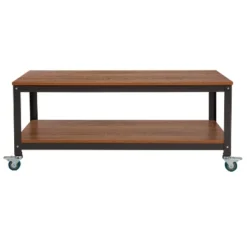 Flash Furniture Livingston Collection TV Stand In Brown Oak Wood Grain Finish With Metal Wheels